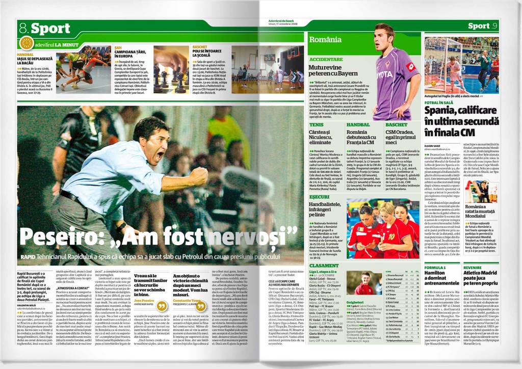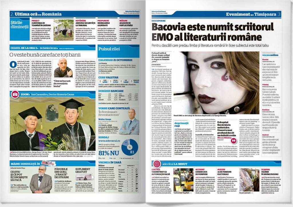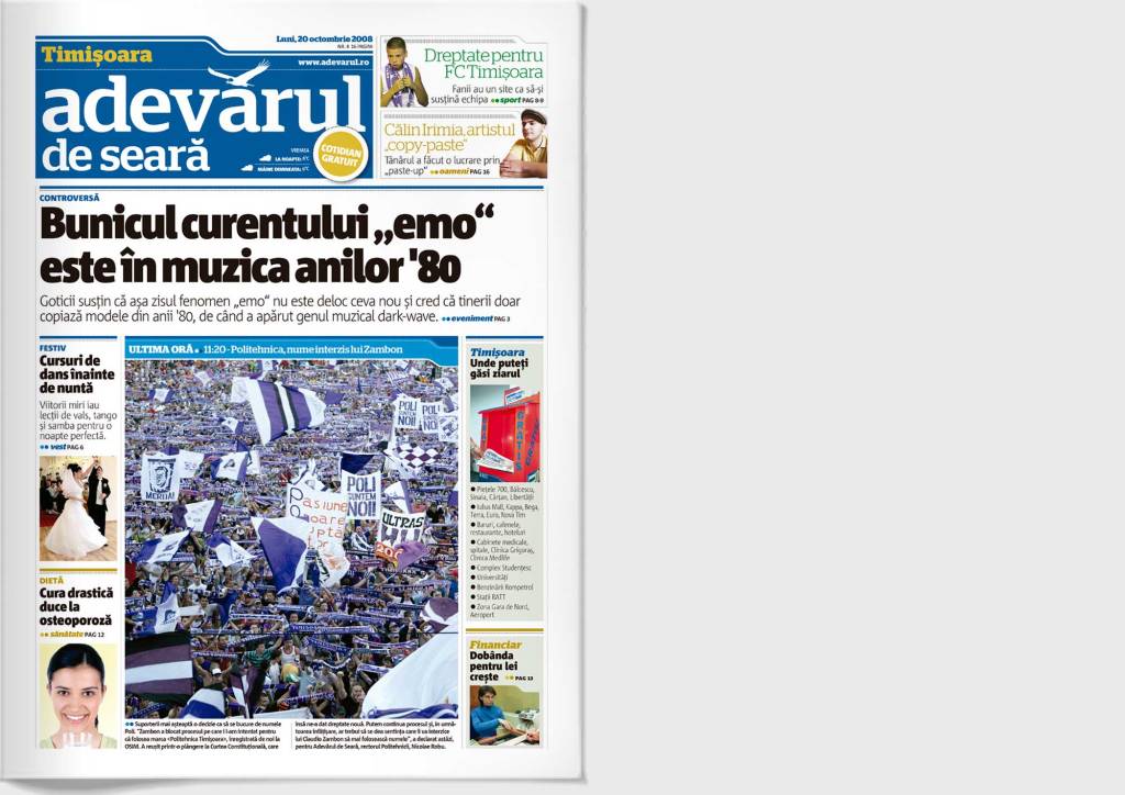 Proyecto | Diseño de este diario nuevo del grupo Adevarul Holding. Con ediciones en cada región del país, el gratuito destaca la marca de Adevarul en el mercado y combina información y servicios locales con contenidos del diario principal.