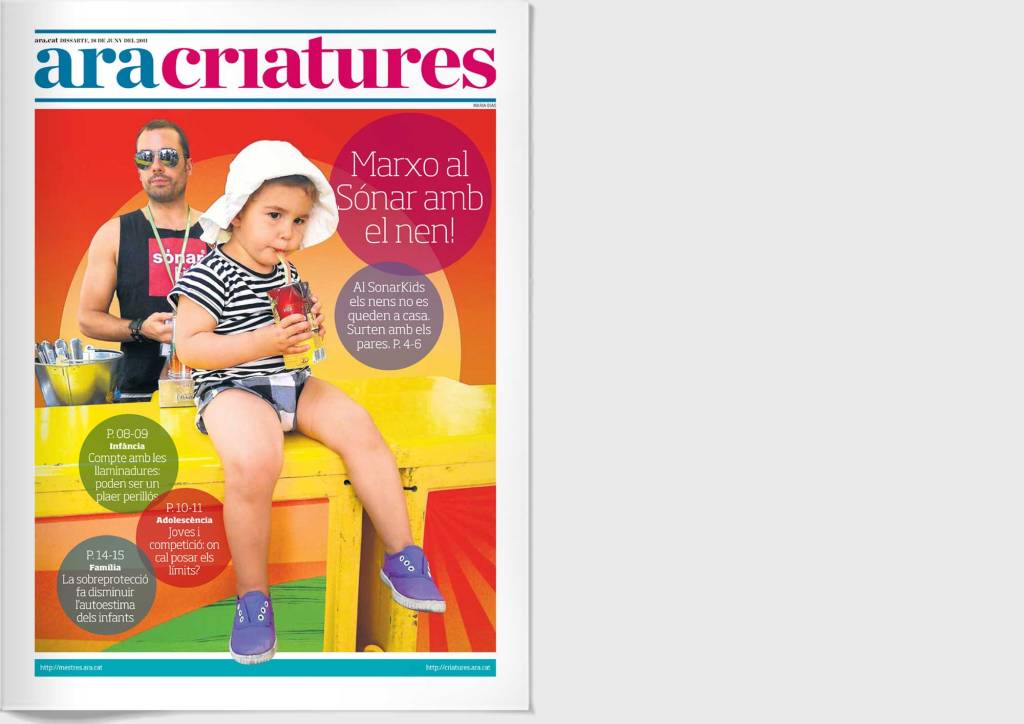 Proyecto | Maquetación de este suplemento semanal del diario Ara. Con un ritmo de lectura más de revista, los contenidos se tratan en reportajes, entrevistas, y piezas fijas sobre la educación y crianza infantil. Se imprime en papel de prensa.