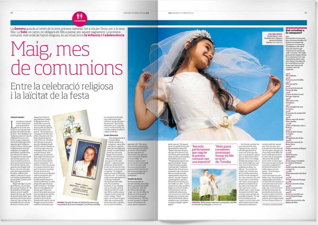 Project | Page layout for this weekly supplement of the Diari Ara newspaper. With a magazine’s reading rhythm, the contents consisted of features, interviews and fixed pages about educating and raising children. Printed on newspaper-quality paper.